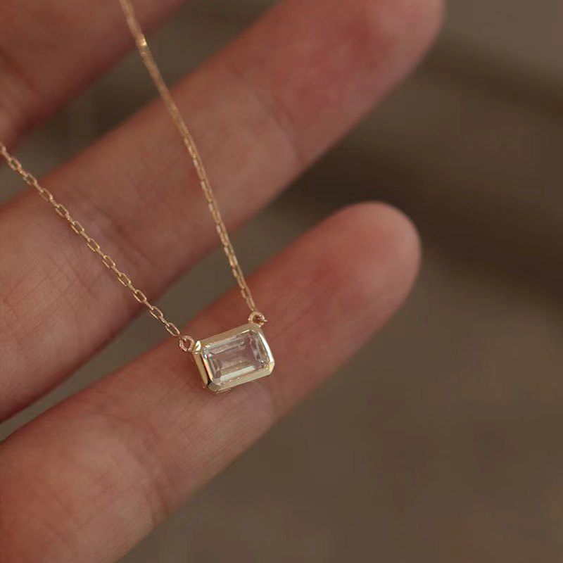 Simple Elegant Niche Design Rectangular Square Sugar Zircon Clavicle Chain Ins Cold Style Sexy Neck Necklace