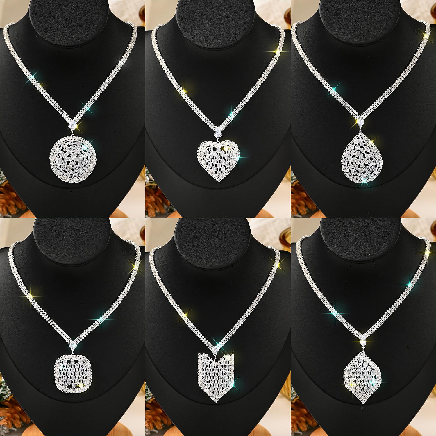 New Zircon Trendy Jewelry Full Diamond Personality Necklace Fashion Exaggerated Wedding Photography Women's V-Neck Low-Cut Sexy