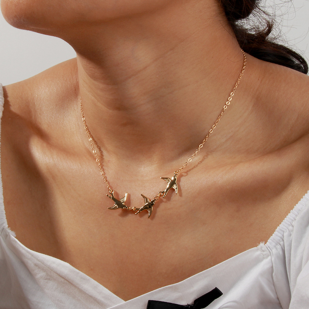 NE314 Li Meng jewelry European and American cross-border new accessories simple metal bird necklace personality sexy clavicle chain