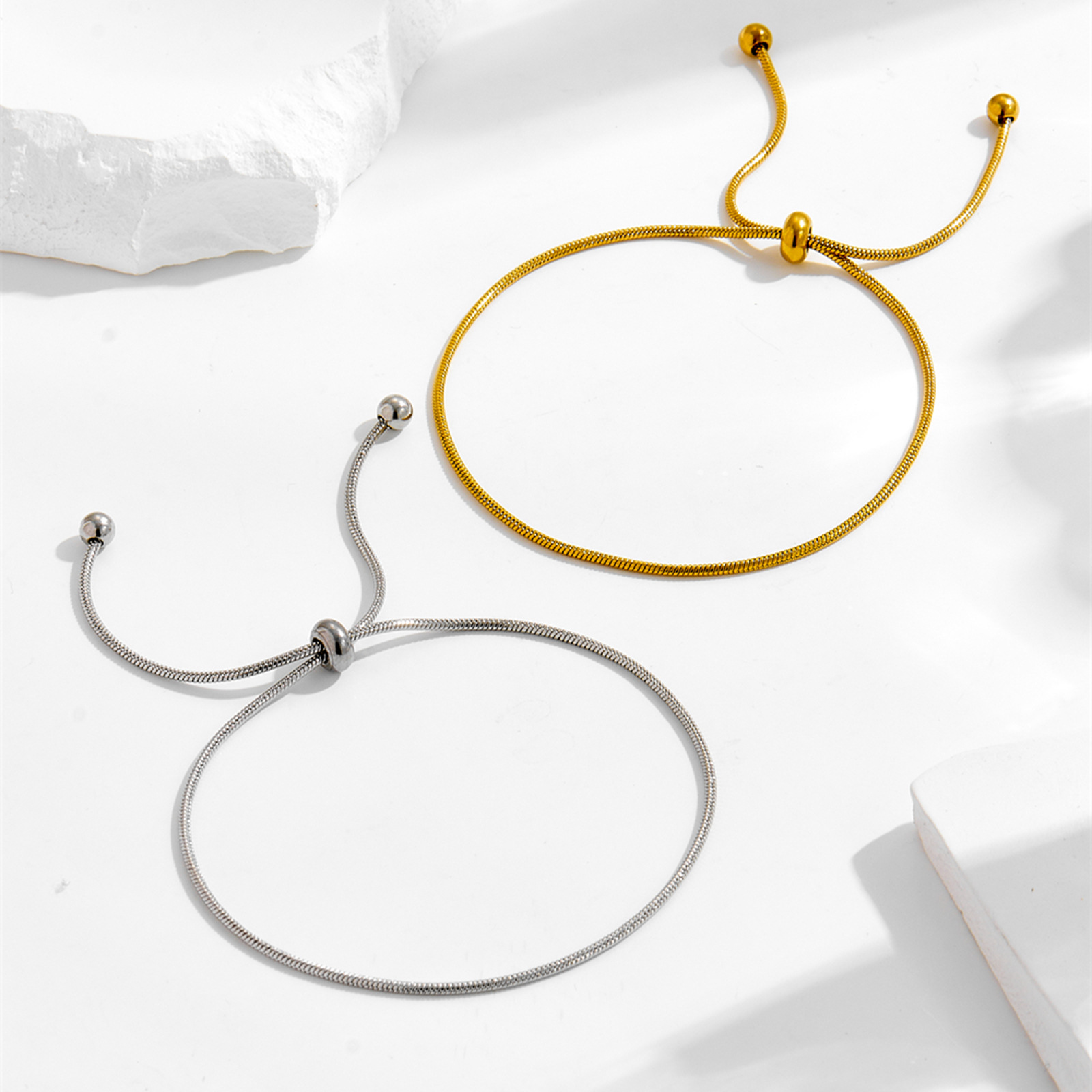 Adjustable Pull-Out Women's Fashion Versatile 18K Sexy European and American Ins Bracelet and Anklet Set, Non-Fading, Ins Style