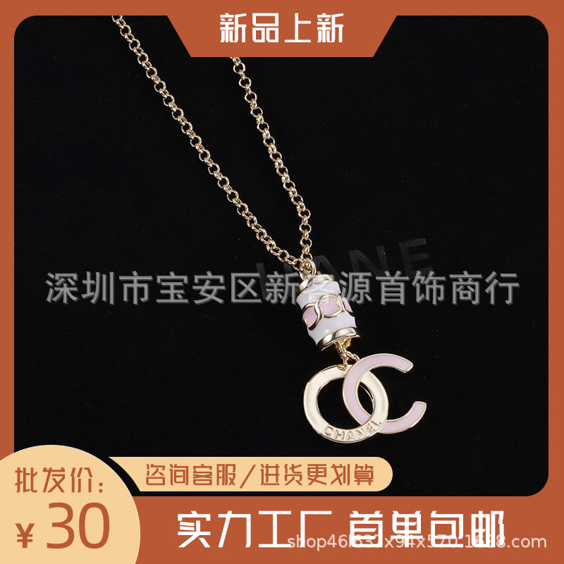 Xiao Xiang Feng Personality Drop Glue Sexy Letter Double C Necklace Personality European and American ins Literary Fragrance Grandma Clavicle Chain Wholesale