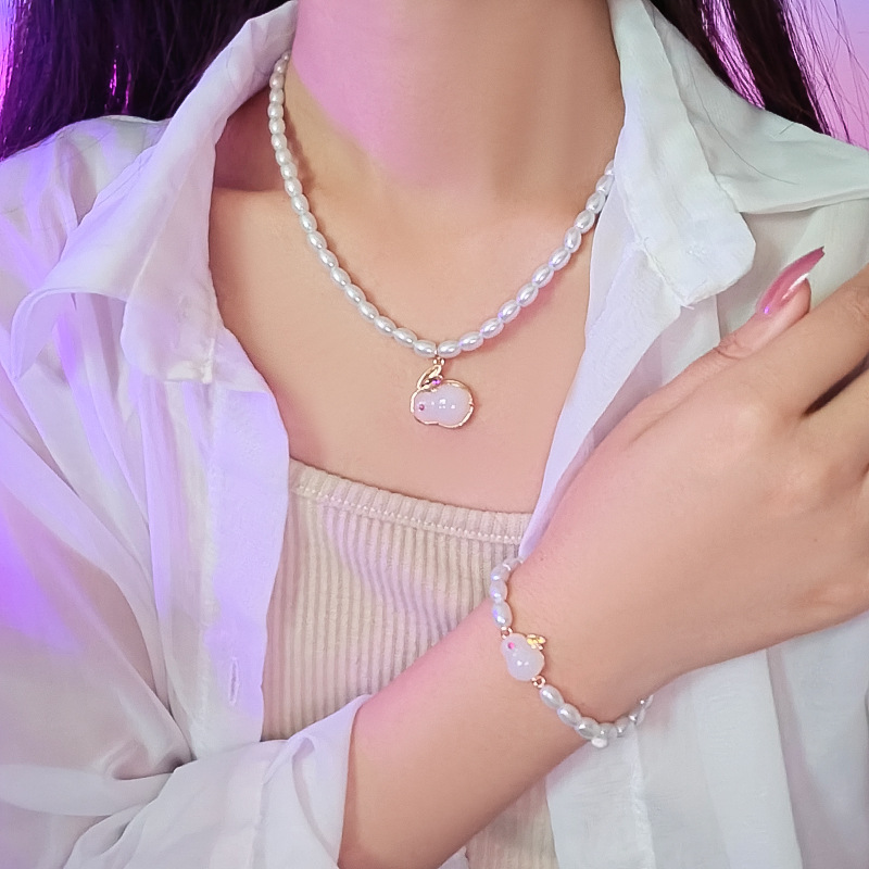 Sweet Jade Rabbit Pearl Necklace Women's Pendant Niche Design High-End Temperament Clavicle Chain Sexy Fairy Necklace