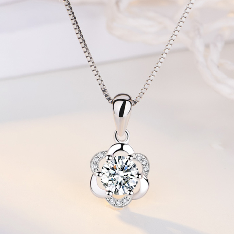 S925 silver flower necklace Korean style student lucky flower pendant women's sexy clavicle chain plum necklace jewelry