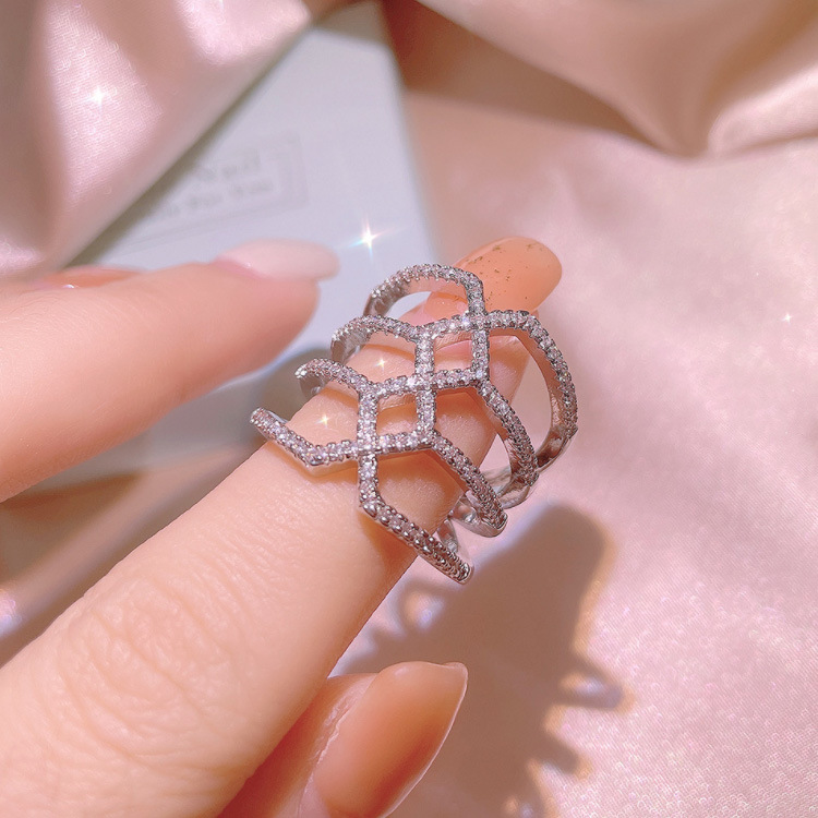 Cross-border ins fashion personality exaggerated index finger ring three-dimensional geometric shape sexy ring female live online celebrity style