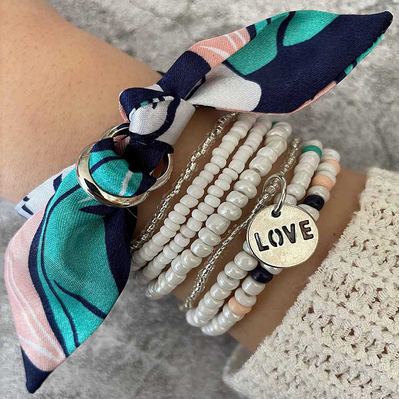 European and American Cross-border Patchwork Bow Ribbon Pearl Beaded LOVE Pendant 6-piece Bracelet Women Sexy Jewelry