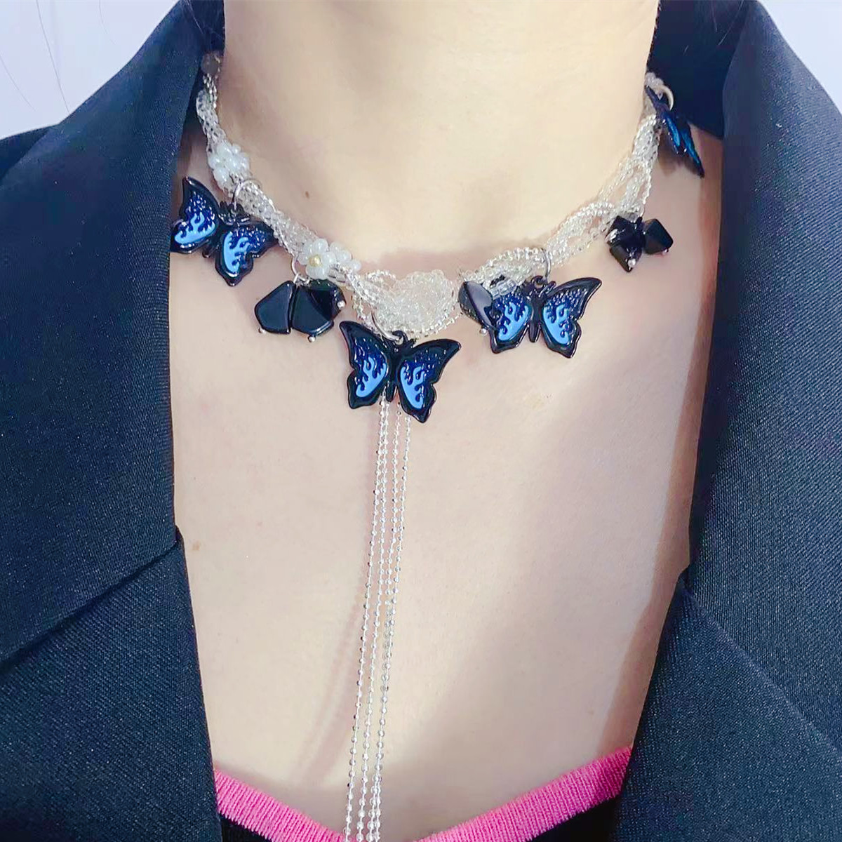 Niche Design Necklace Women's Knot Wrapping Beads Blue Butterfly Water Drops Clavicle Chain Personalized Sexy Women's Necklace
