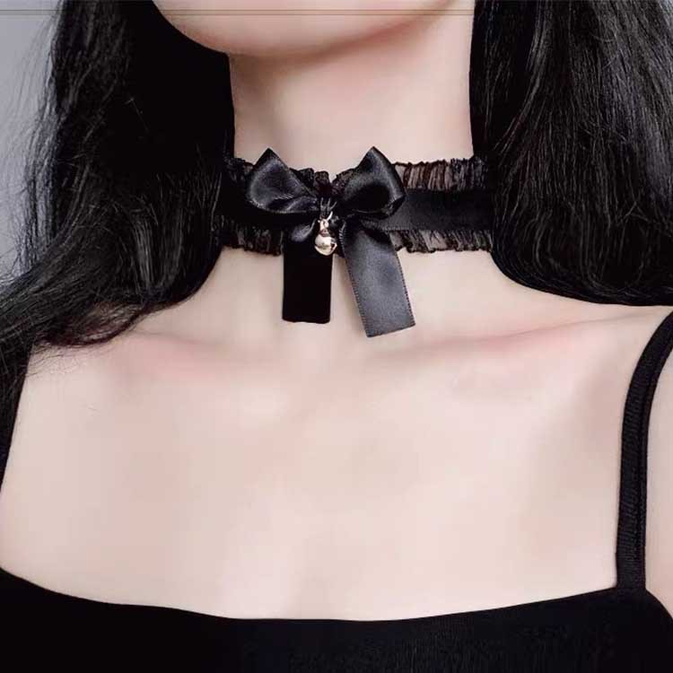 Bow lace small bell necklace clavicle chain neck accessories soft girl neck strap cos sexy maid collar