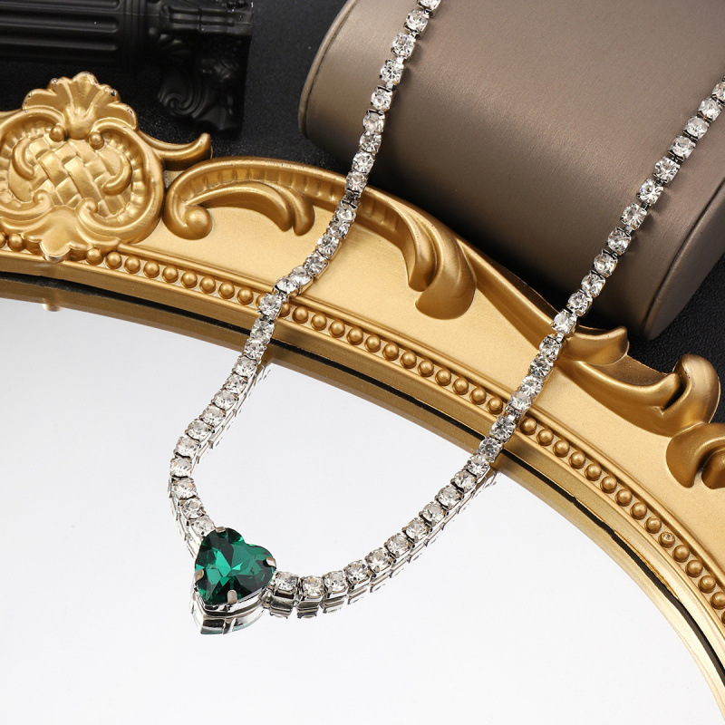 Light Luxury Emerald Heart-Shaped Necklace, Feminine Clavicle Chain, Ins Style Trendy Necklace