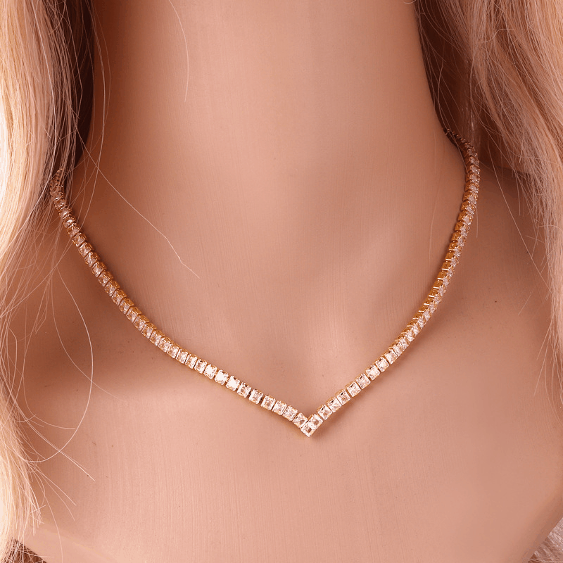 Fashion Design V-shaped Full Zircon Clavicle Chain Earrings Bracelet Set European and American All-match Sexy Neckchain Accessories