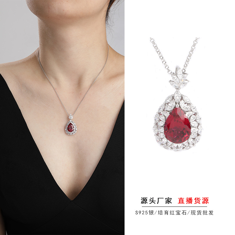 S925 Silver Artificially Cultivated Ruby Water Drop 10*14mm Sexy Women's Necklace Niche Elegant Colorful Treasure Pendant