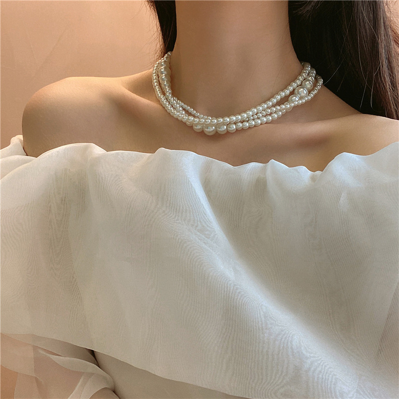 Sexy Spice Multi-layer Design Pearl Artistic Retro Necklace Decorative Niche Elegant Necklace Cyber Celebrity Clavicle Chain for Women