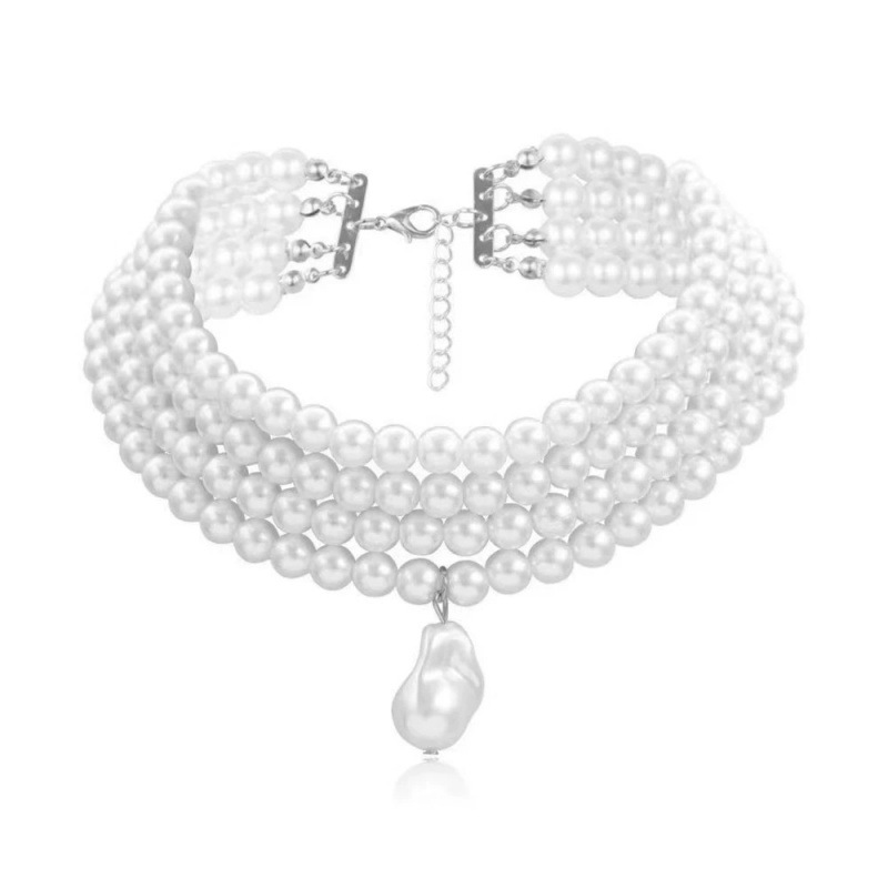 European and American cross-border jewelry special-shaped baroque imitation pearl necklace women's multi-layer metal fashion sexy clavicle chain wholesale