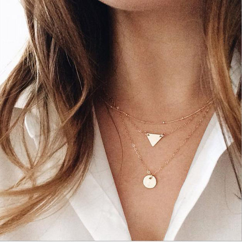European and American cross-border jewelry summer sexy clavicle chain women's triangle round thin chain three-layer necklace wholesale