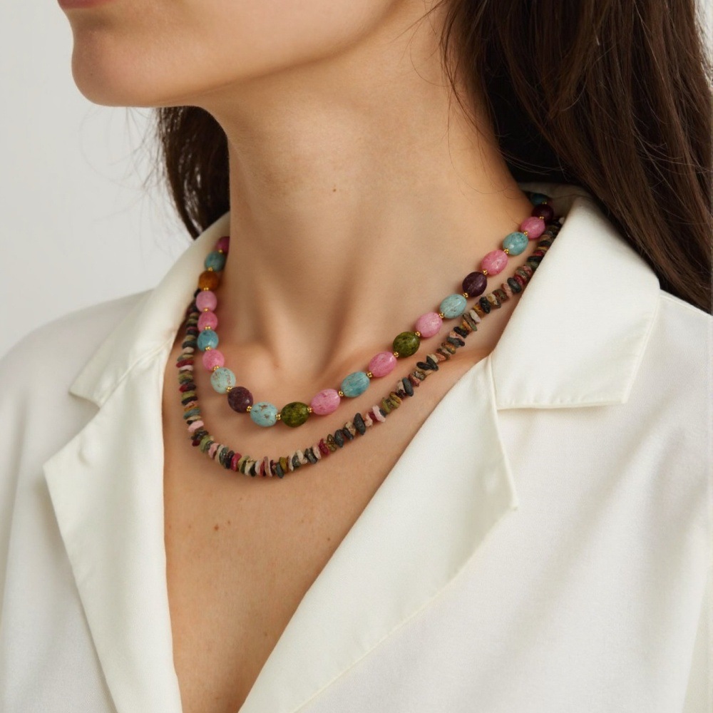 Vintage Ethnic Style Stacked Color Tourmaline Necklace Personalized Fashion with Sexy Bohemian Style Semi-Precious Stone Necklace
