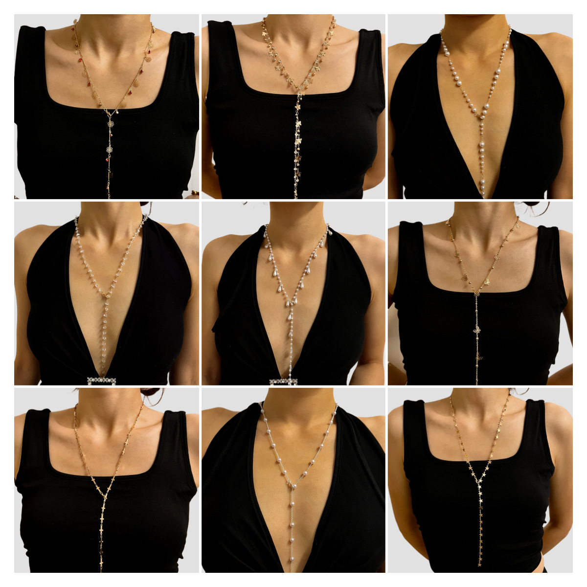 European and American Fashion Crystal Pearl Necklace Female Sexy Y-Shaped Long Necklace Tassel Dress Back Chain Neck Necklace Jewelry