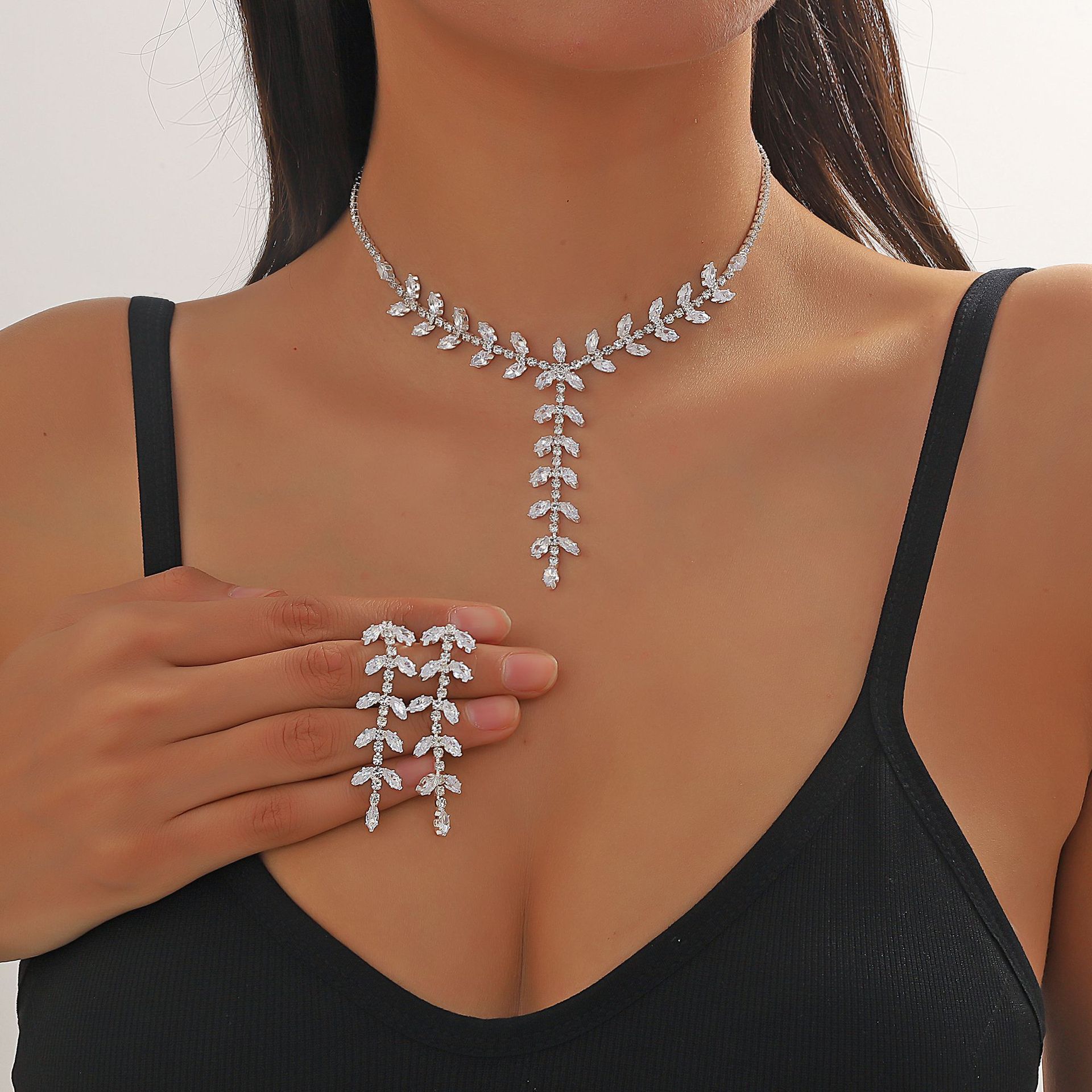 European and American Sexy Evening Dress Exquisite Zircon Rhinestone Clavicle Chain Necklace Wheat Flower Necklace Earrings Set