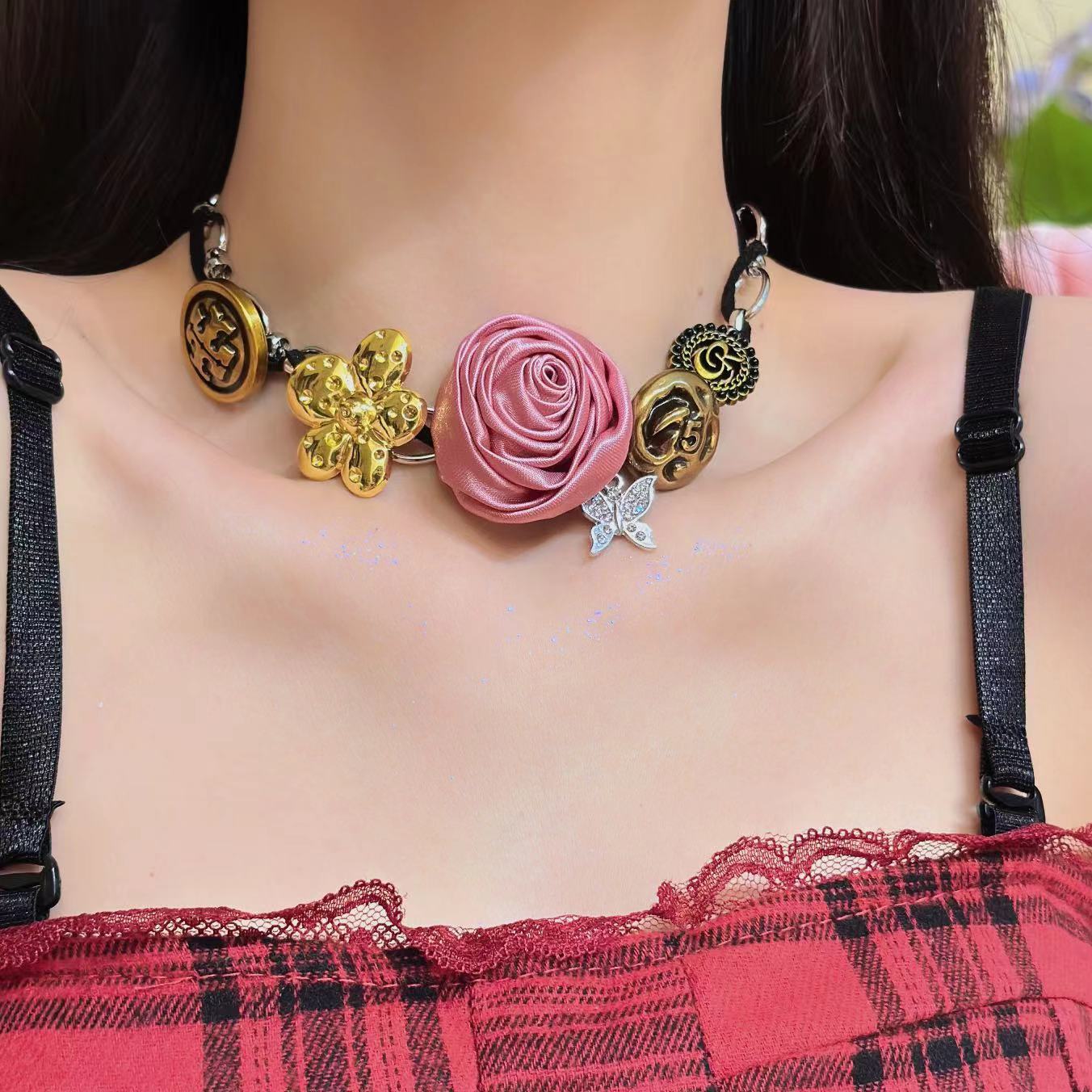 Sweet Cool Flower Butterfly Button Lock Bone Chain Fashion High Sense Sexy Spice Girl Unique Niche Design Necklace