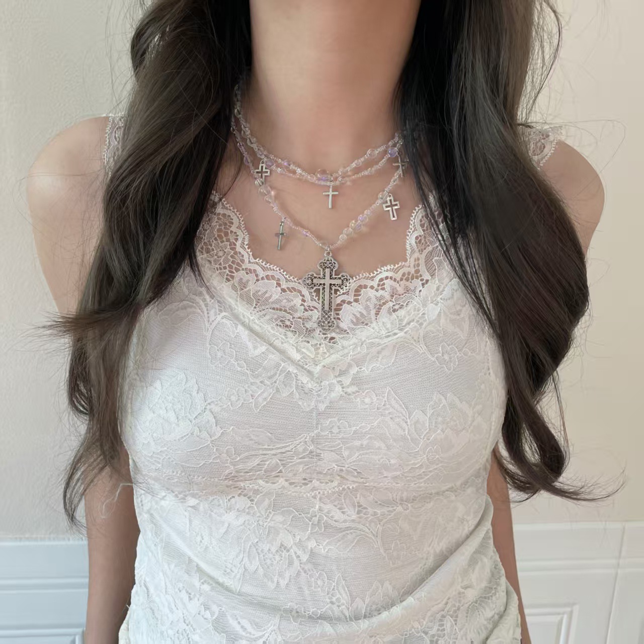New Cross Beaded Tassel Necklace Women's Niche Sexy High-End Clavicle Chain Sweet and Cool Elegant Accessories Jewelry