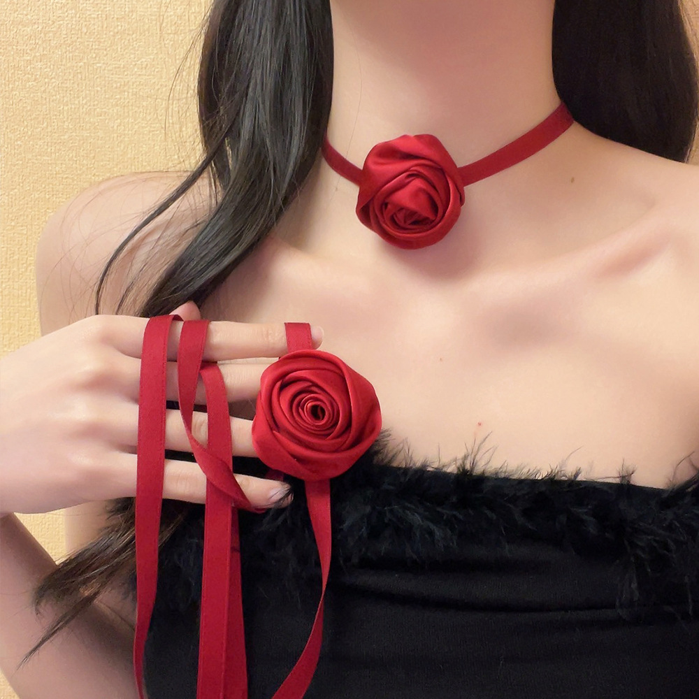 French Vintage Pure Desire Rose Choker Collar Spice Style Dinner Necklace Neck Jewelry Sexy Neck Belt for Women