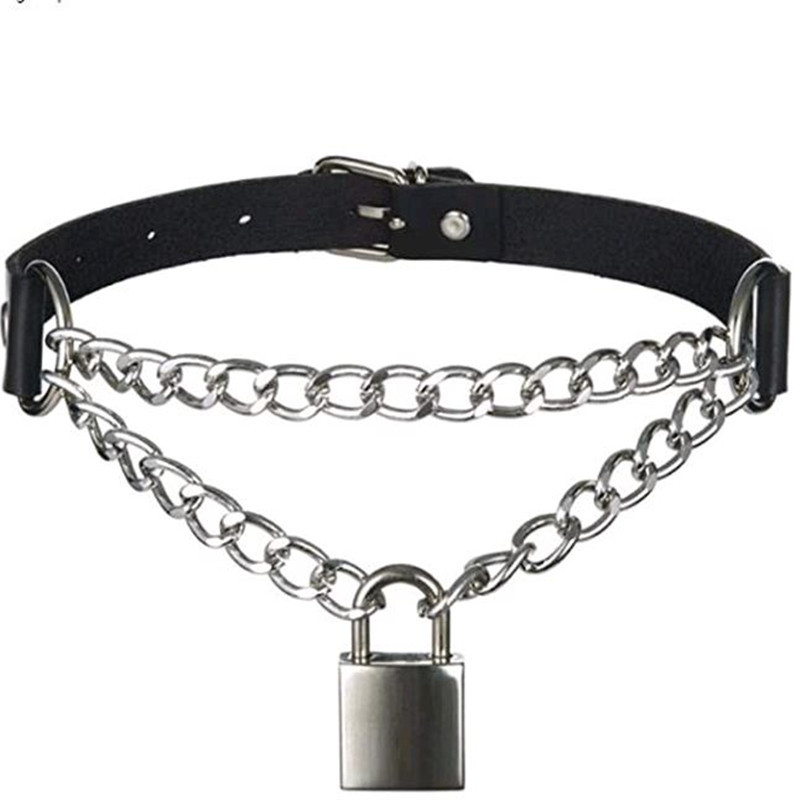 European and American cross-border jewelry punk hip hop leather collar lock necklace clavicle chain nightclub sexy all-match necklace