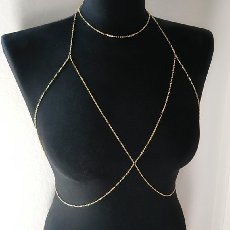 Fashion Simple Women Sexy Gold Chain Bikini Clothing Accessories Body Chain Necklace