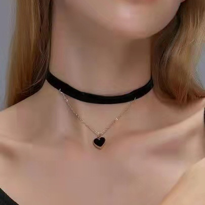 Japanese and Korean Style Distinctive Neck Jewelry Beautiful Velvet Necklace Women's Sexy Cyber Popular Double-Layer Love Pendant Necklace Chain