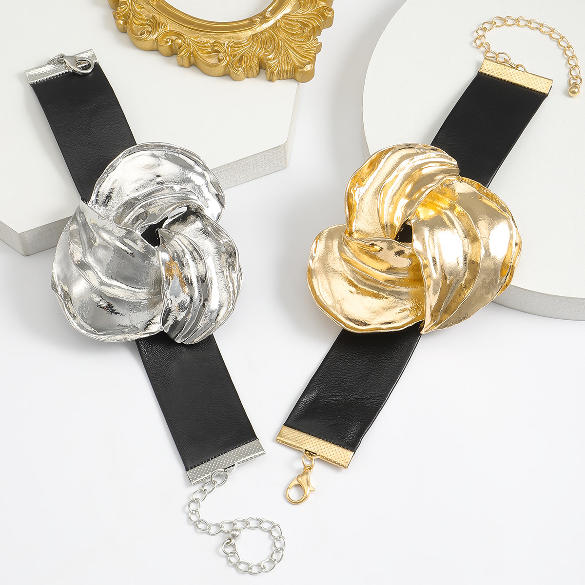 Europe and the United States new sexy chain bracelet metal flower ZAPU leather bracelet cross-border hot nightclub punk style