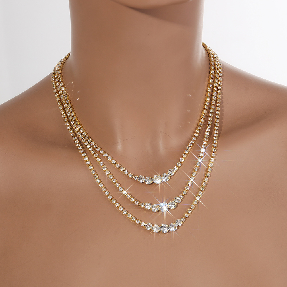Cross-border Europe and the United States New Temperament Full Diamond Sexy Necklace Fashion Trend Street Photograph Retro Claw Chain Multi-layer Rhinestone Necklace