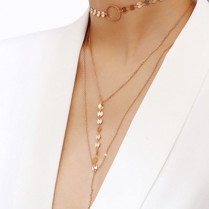 New European and American jewelry personalized fashion sexy handmade copper sequins multi-layer versatile collarbone necklace