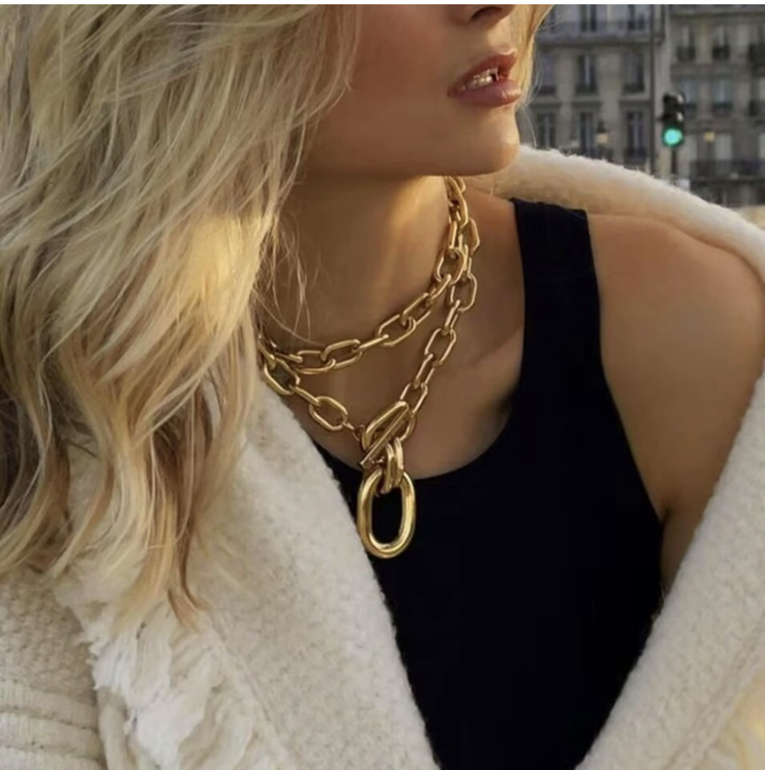 European and American Cross-Border Jewelry New Chain Metal Necklace Female Sexy Hot Girl Clavicle Chain Two-Piece Set Manufacturer Wholesale