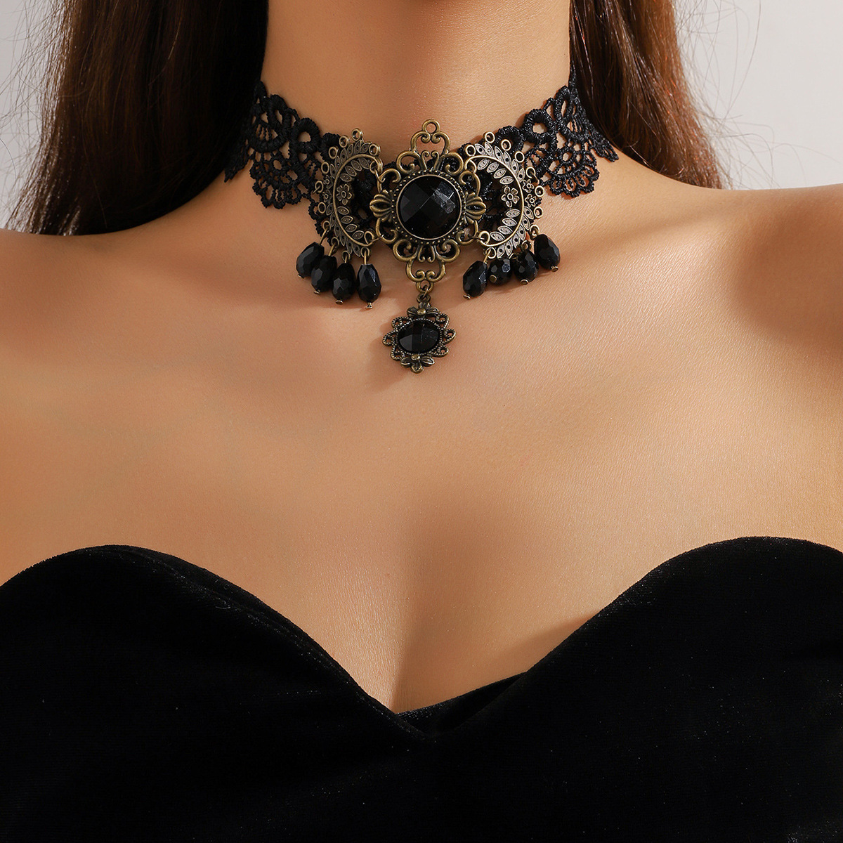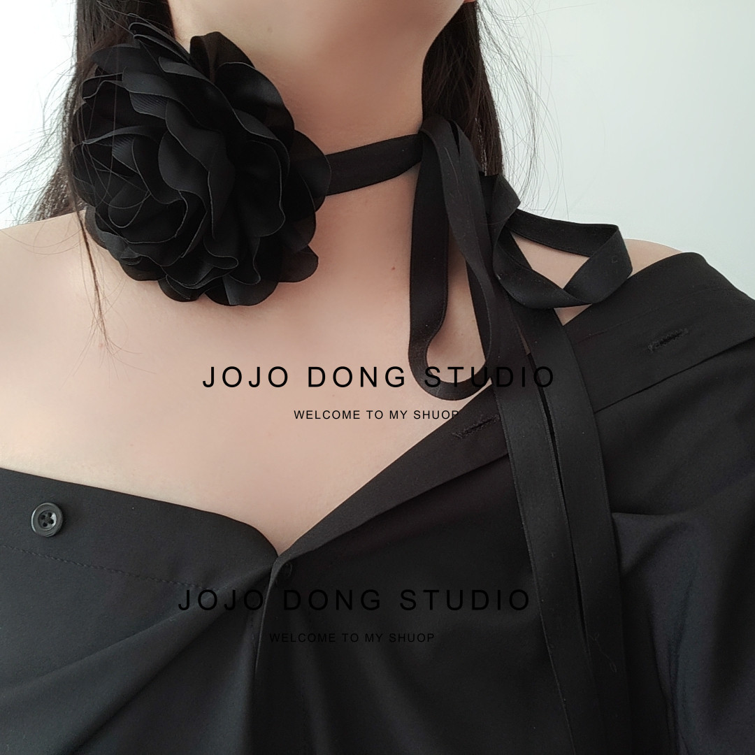 Retro dark black lace-up three-dimensional large flower collar choker dinner necklace neck jewelry sexy neck strap for women