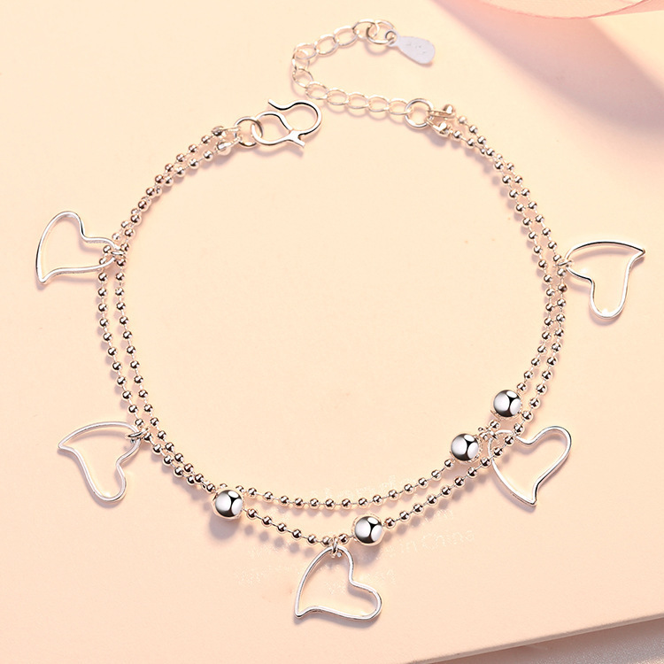 European and American fashion silver plated bracelet fashion personality double love anklet exotic versatile sexy heart shaped bracelet