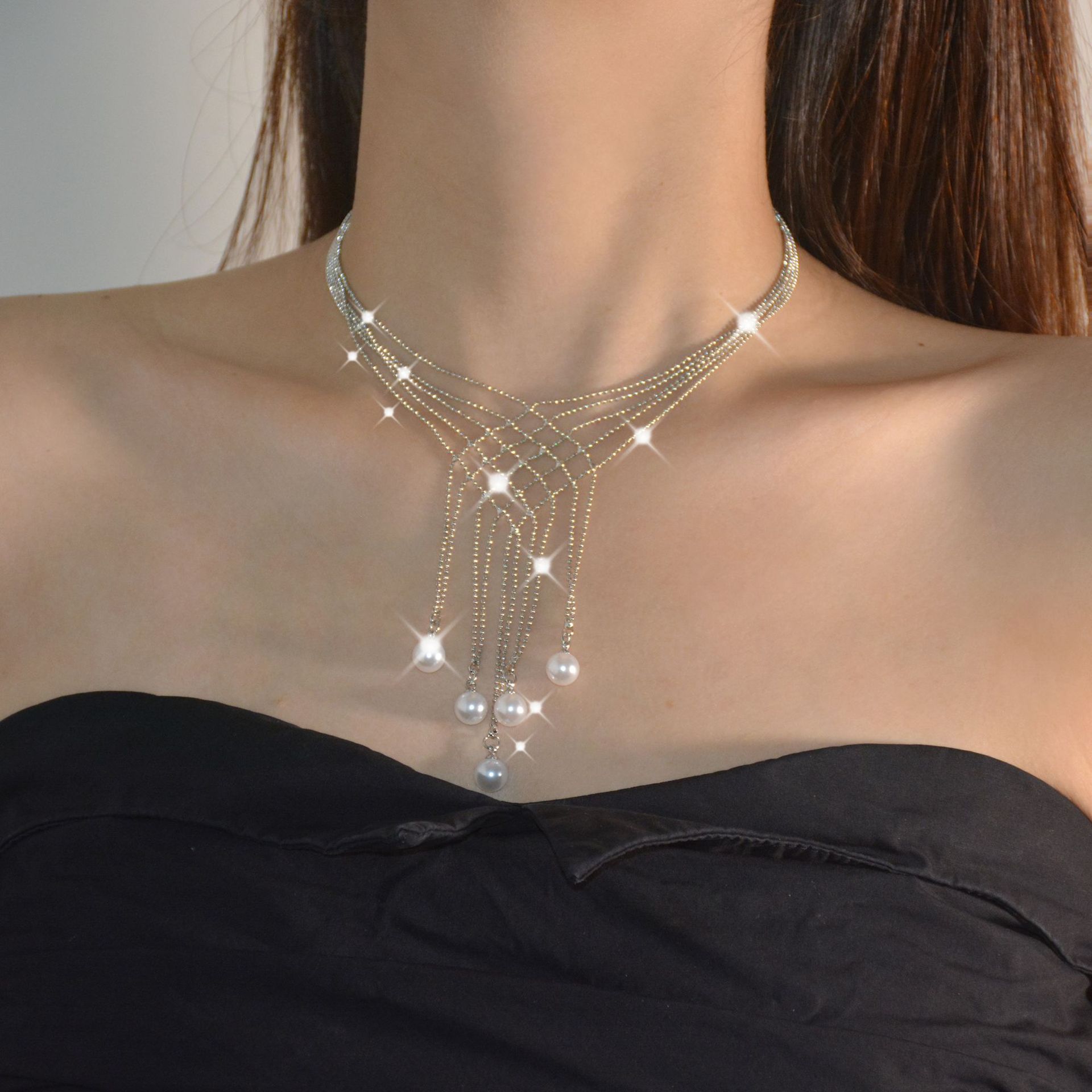 Starry natural pearl necklace exquisite chain design sense niche design high sense sexy European and American flow necklace