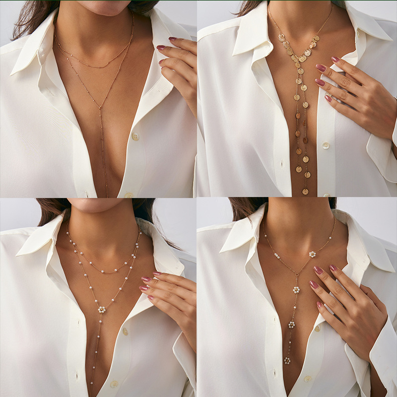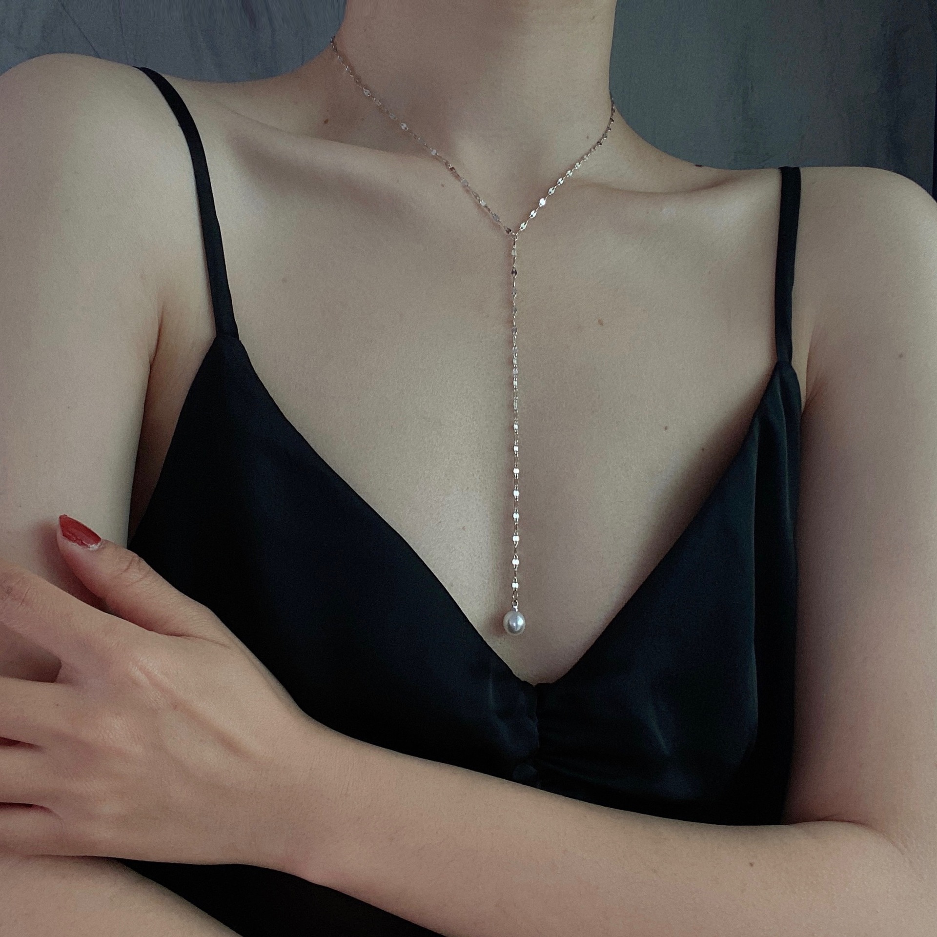 European and American Cross-Border Jewelry Sexy Imitation Crystal Thin Chain Long Necklace Accessible Luxury Y-Shaped Imitation Pearl Sequin Tassel Necklace