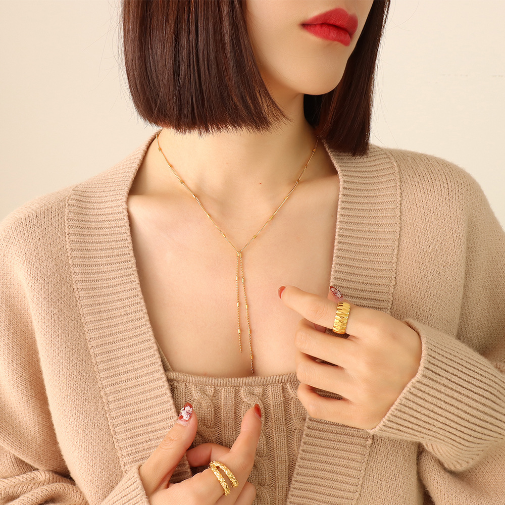 Korean Style Fragrant Style Niche Design Geometric Necklace Titanium Steel Tassel Sexy Clavicle Chain First Jewelry P514