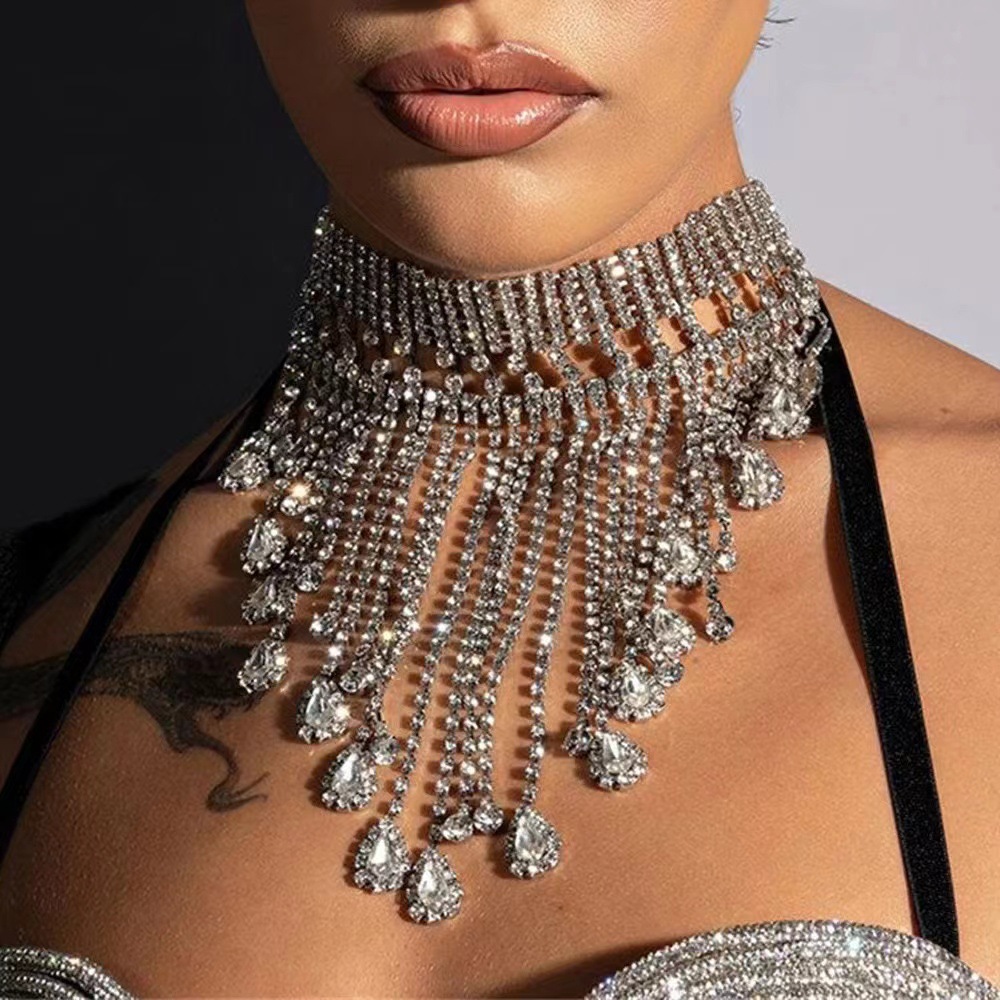 Factory direct new fashion rhinestone tassel necklace Europe and the United States sexy multi-layer exaggerated Joker full diamond clavicle necklace