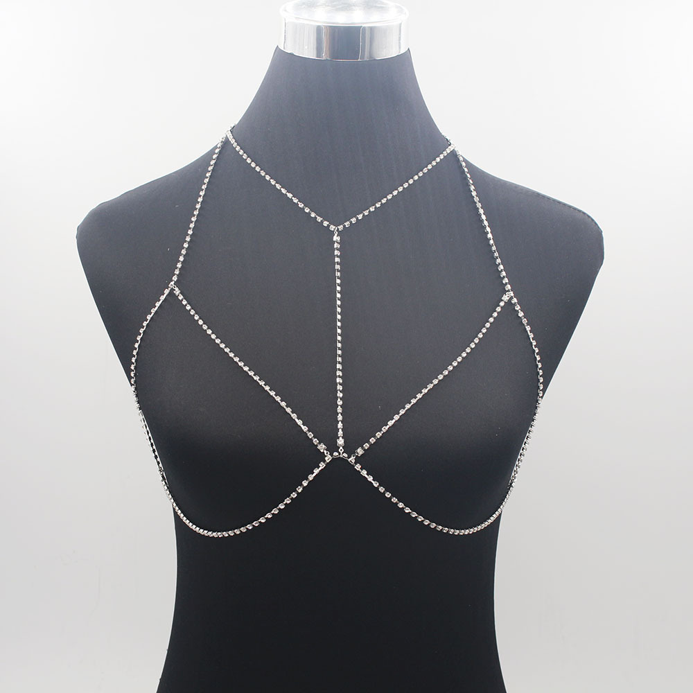 Fashion simple geometric chest chain women's summer sexy bikini metal diamond body chain necklace