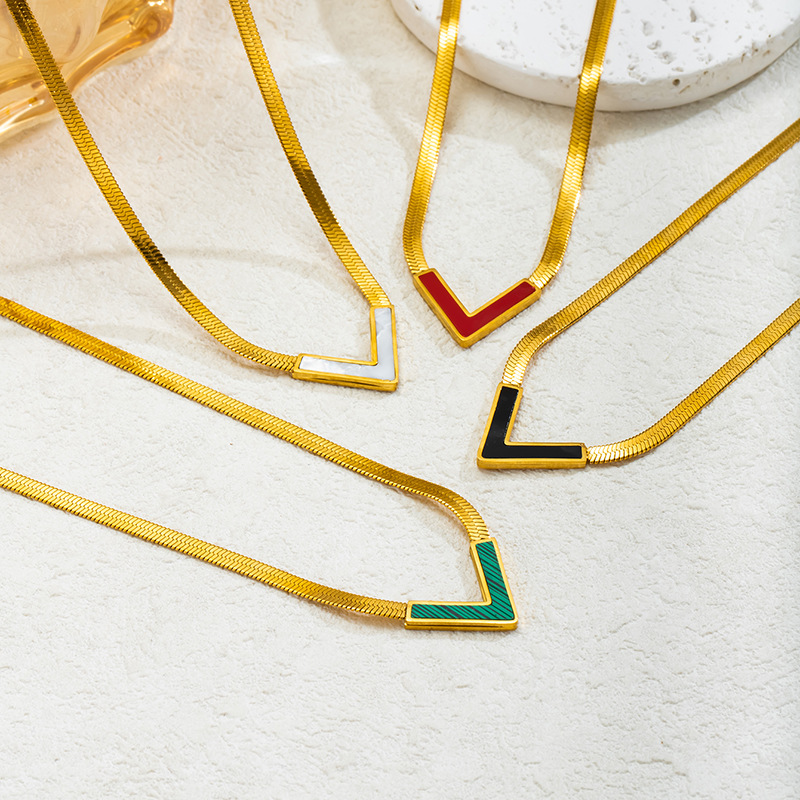 European and American Cross-border Hot Sexy V-shaped Pendant Flat Snake Chain Necklace Vintage Personalized Stainless Steel Plated 18K Jewelry for Women