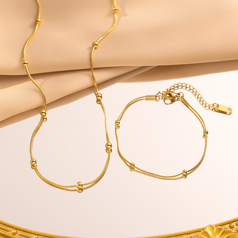 Simple round beads snake bone chain necklace Women's Light luxury small lucky beads bracelet 2023 New 18K sexy foot chain suit