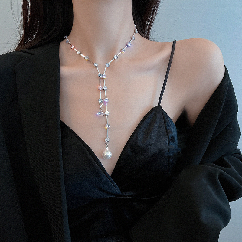 High-end Long Y-shaped Tassel Flash Diamond Necklace Women's Niche Light Luxury Double-layer Sexy Clavicle Chain Exquisite Necklace Chain