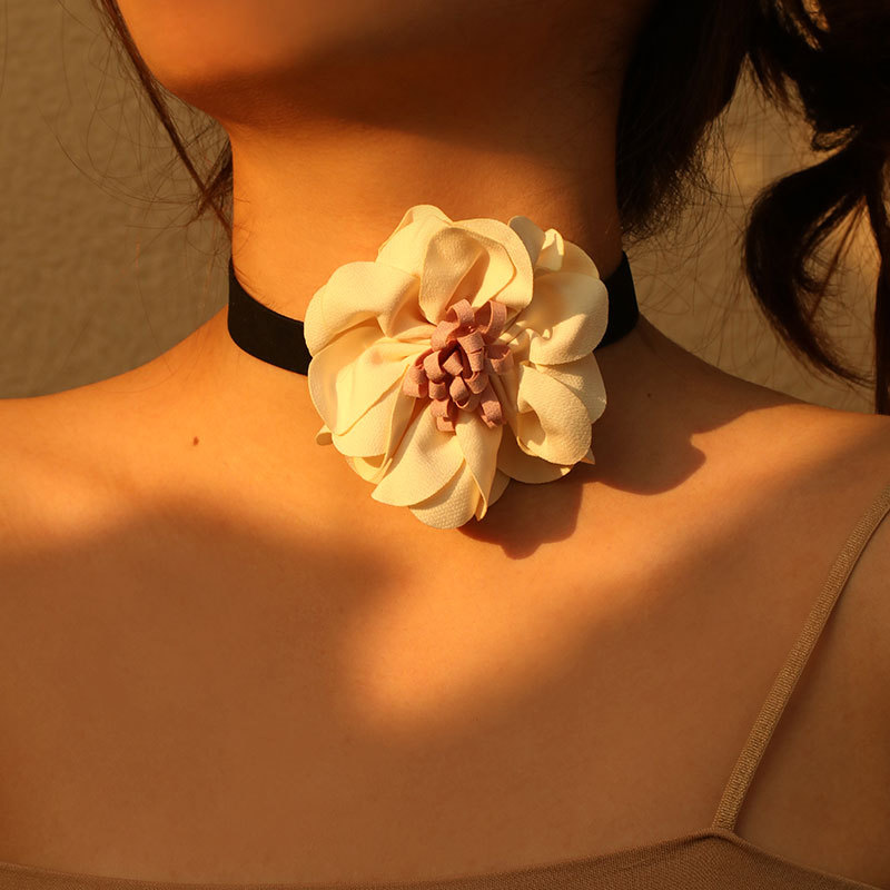 Gute cross-border new solid color flower short collar neck strap niche design sexy elegant women's necklace wholesale