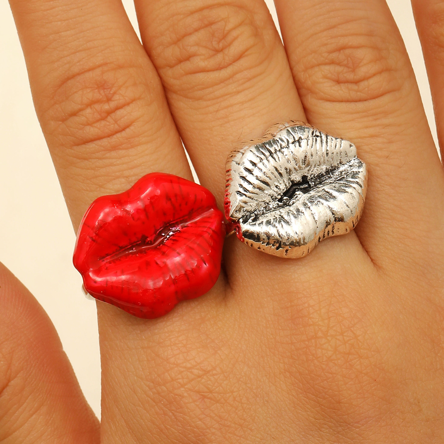 Cross-Border New European and American Style Retro Sexy Lip Single Ring Versatile Ins Red Lipstick Single Ring for Women