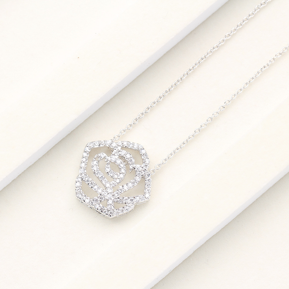 High-end temperament micro-inlaid zircon hollow rose necklace simple gold-plated pendant sexy fashion clavicle chain Women's