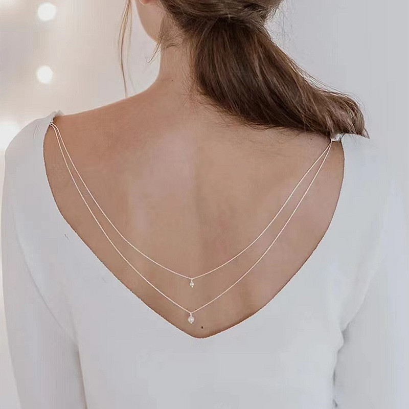 European and American Cross-border Jewelry Fashion Sexy Women's Back Necklace Accessories Simple Multi-layer Pearl Pendant Back Chain