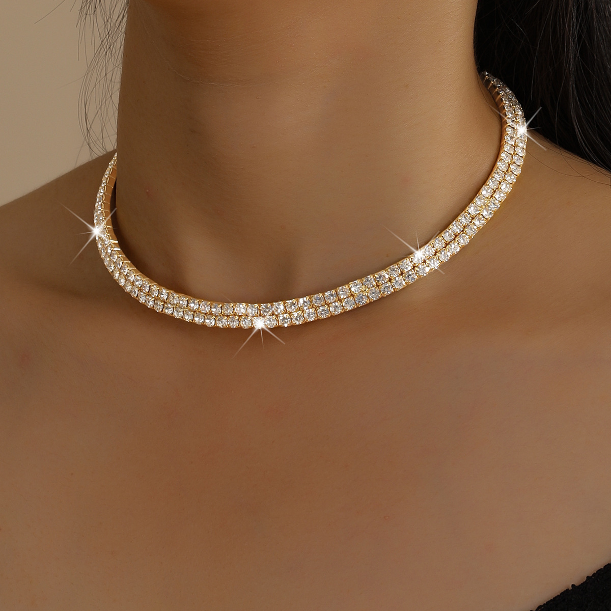 Cross-Border Claw Chain Series European and American Sexy Super Flash Rhinestone Collar Full of Diamonds Exquisite Simple Multi-Row Necklace