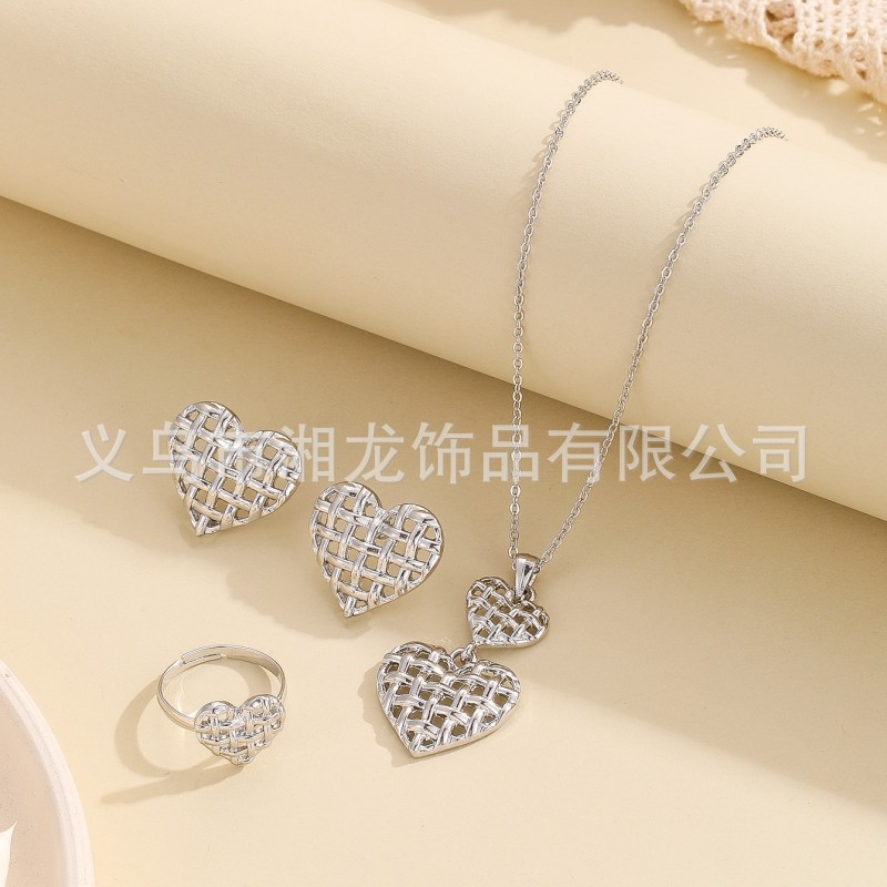 Factory Direct Cross-border Explosions Fashion Sexy Heart-shaped Light Luxury Simple Wind Necklace Earrings Ring 3-piece Set