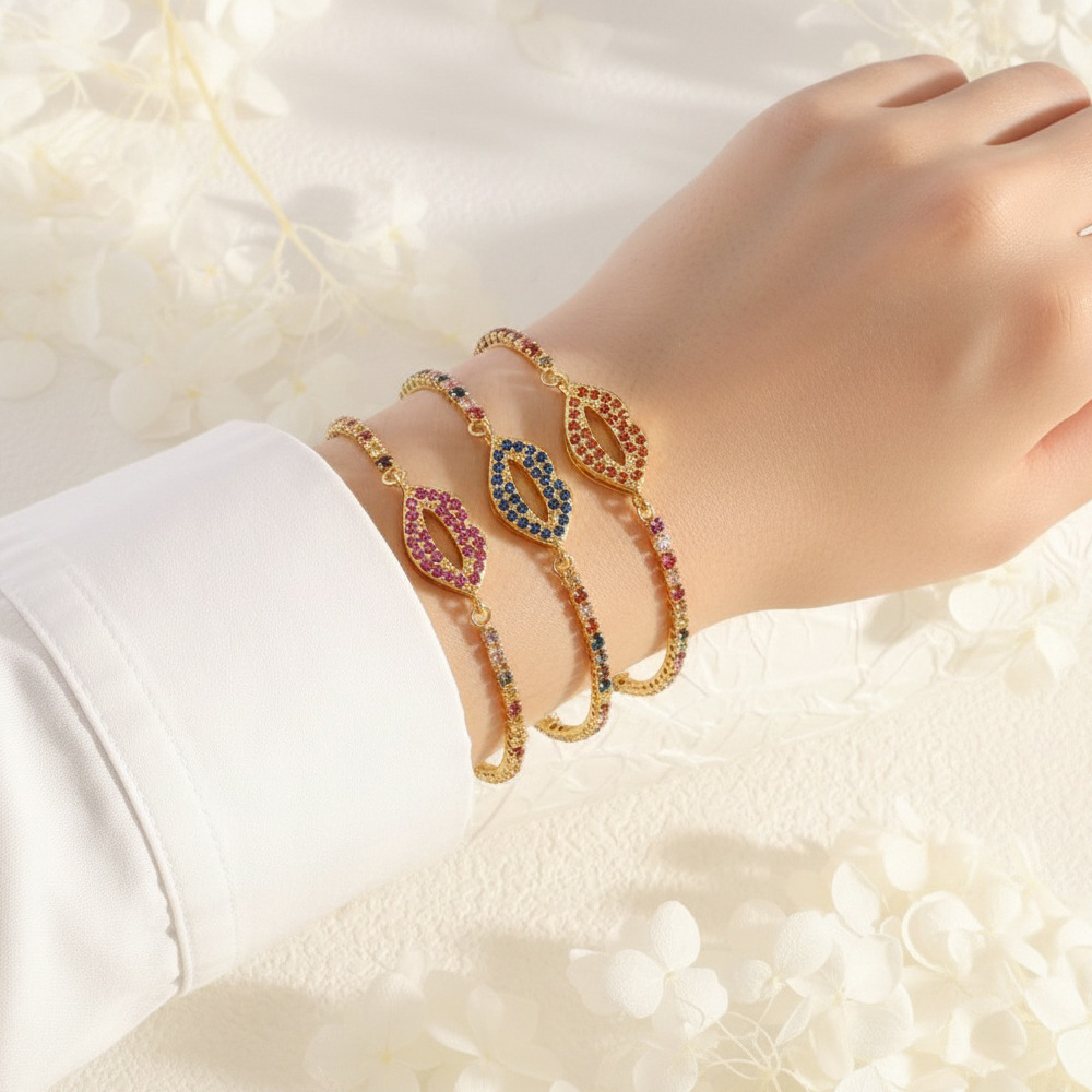Foreign trade cross new ins style sexy lips bracelet women's copper micro inlaid zircon adjustable color zirconium pull bracelet