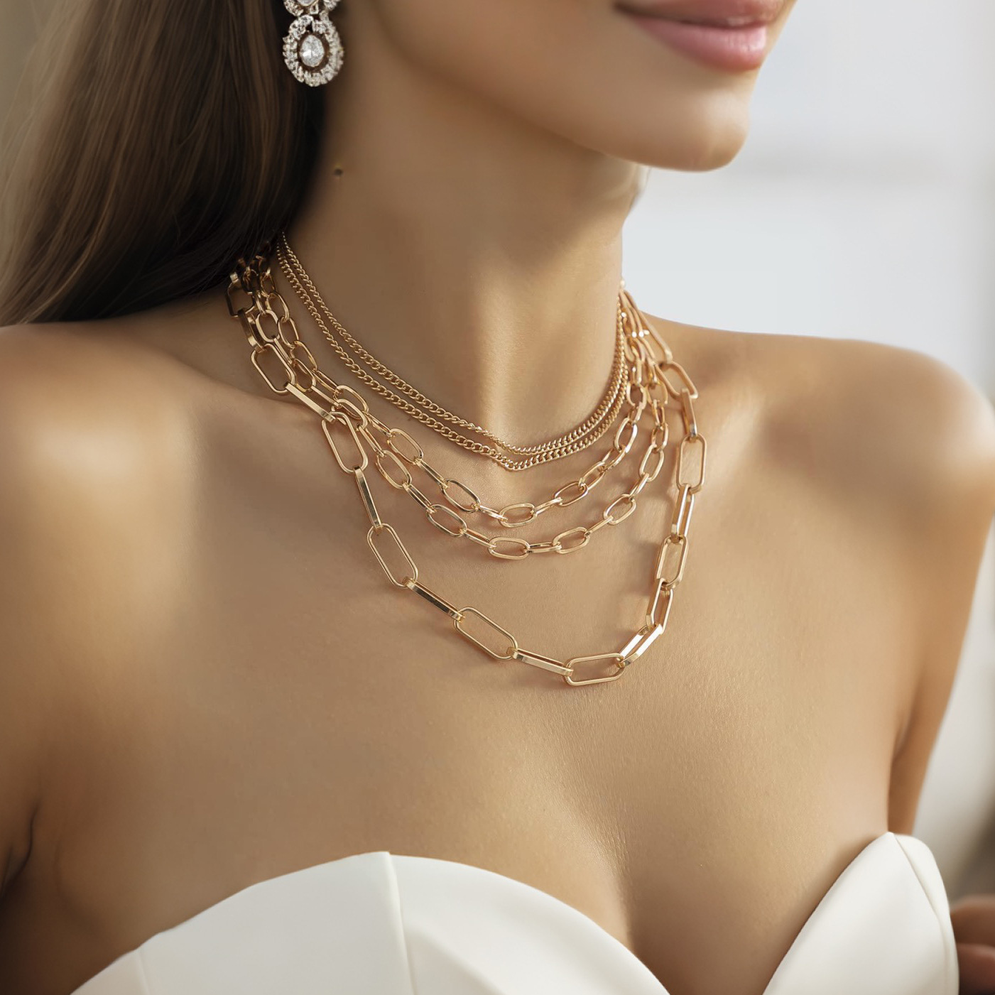 European and American Cross-Border Jewelry Punk Retro Multi-Layered Mixed Thick Chain Necklace Versatile Sexy Choker Necklace for Women