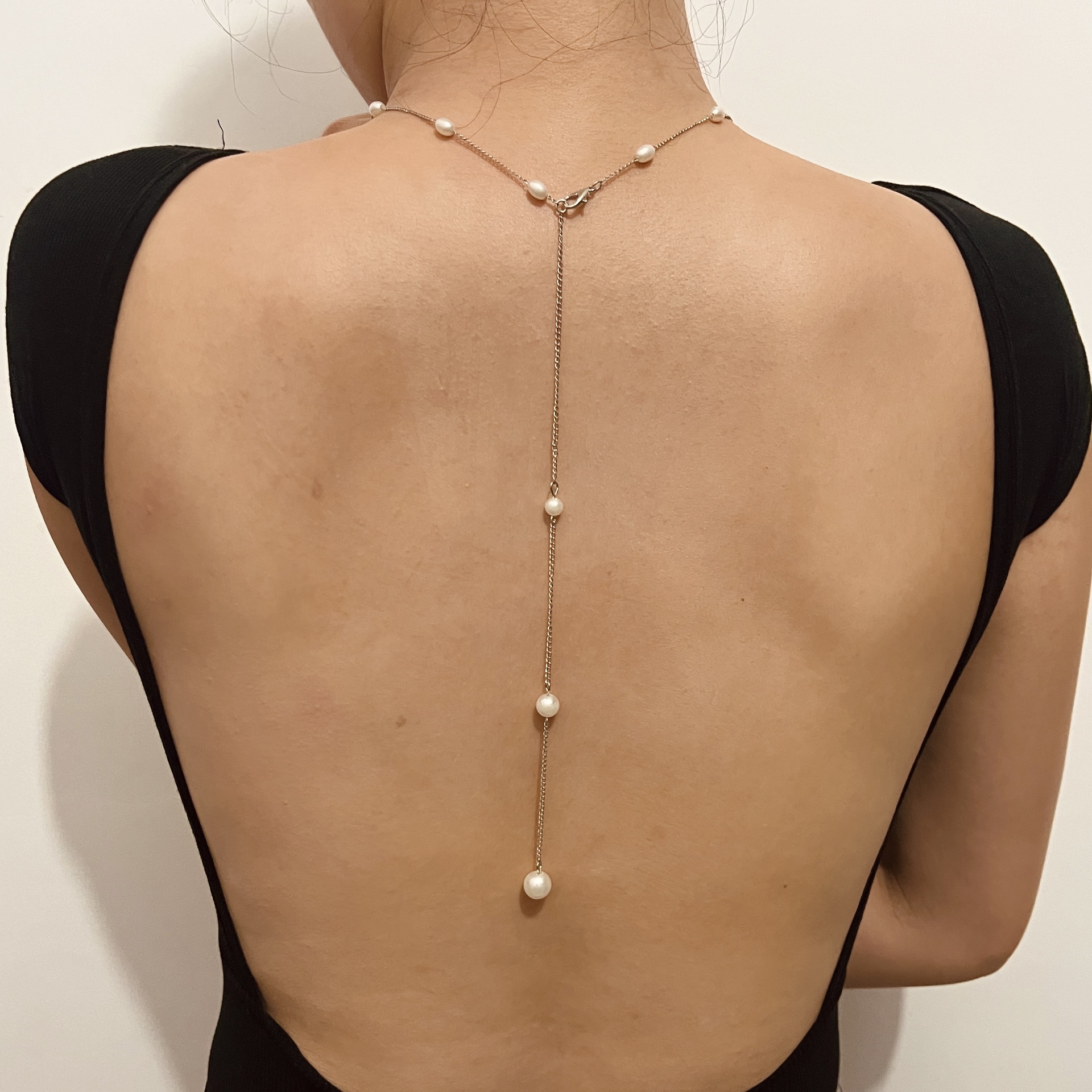 European and American Cross-border Jewelry Beach Style Simple Pearl Back Necklace Sexy Tassel Water Drop Bridal Dress Necklace