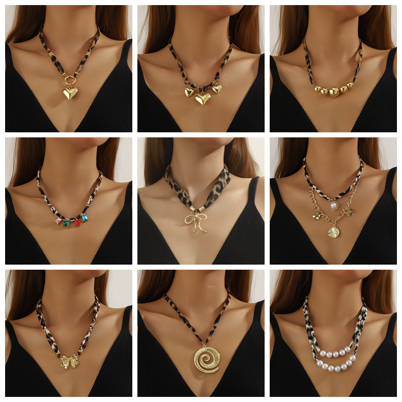 European and American Cross-Border New Fashion Sexy Leopard Print Heart Starfish Pendant Clavicle Necklace Fashion Niche Light Luxury Necklace